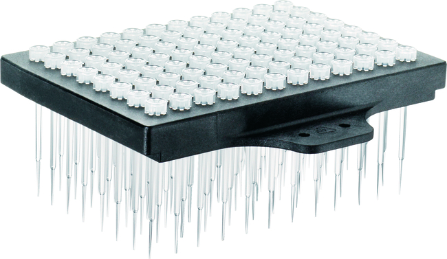 Perform pipetting more effectively with Thermo Scientific™ Matrix™ SerialMate™ Extended Length Pipette Tips, for use with the Matrix SerialMate™ Pipetter. Unlike conventional automation tips, D.A.R.T.'s™ are packaged in disposable rigid magazines and seal onto the pipetting heads by being pressed against a silicone pad. This definitive seal minimizes volume displacement, ensures tip straightness and enables consistent dispensing for improved well access. A small internal orifice provides small droplet formation resulting in optimal accuracy and precision.