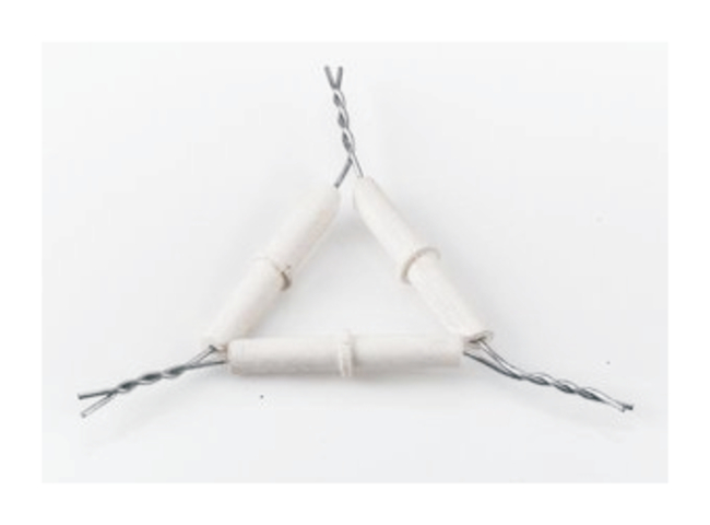 Crucibles completely exposed to flame. They rest on three flanges of clay pipe stems covering iron wire of triangle.