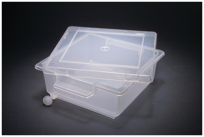 Gel Staining Tray for staining, fixing, de-staining, and handling fragile electrophoresis gels and membranes.